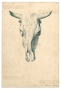 disegno di bucranio naturale, veduta frontale, disegno a matita su cartoncino