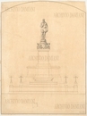 155.4 Schema di un monumento civile con fontana, tre statue di bronzo ed un leone